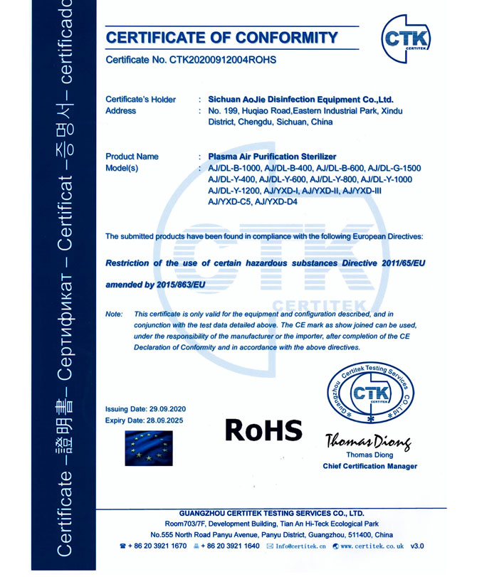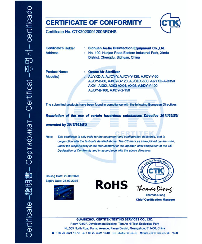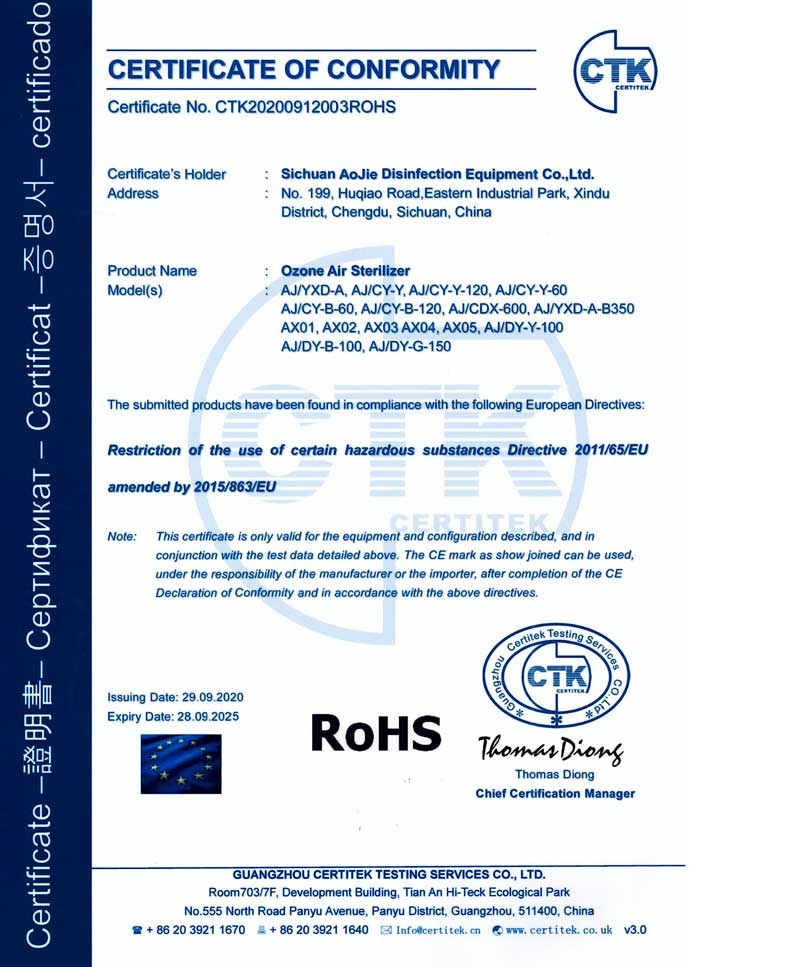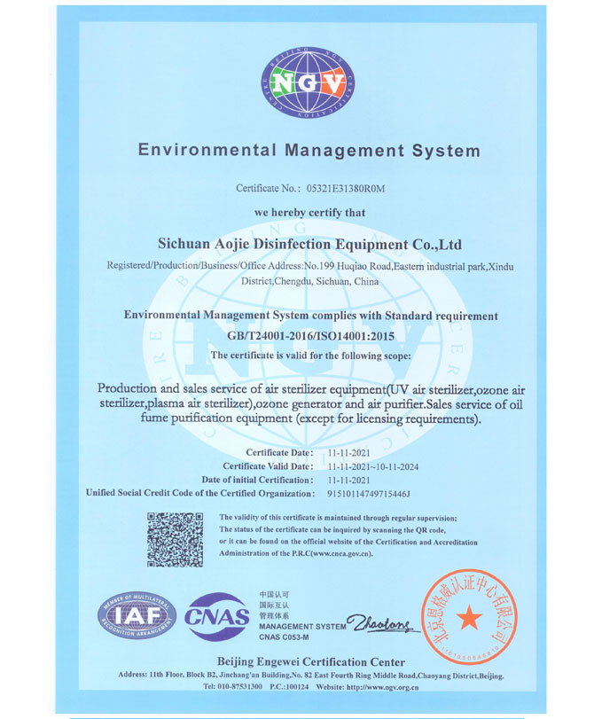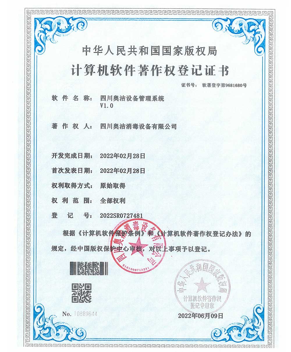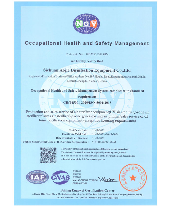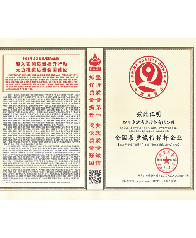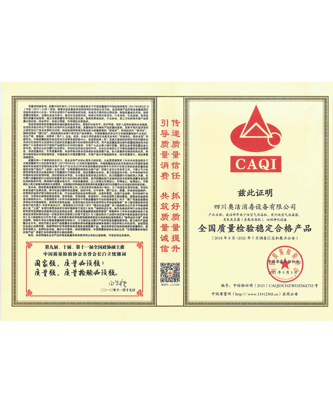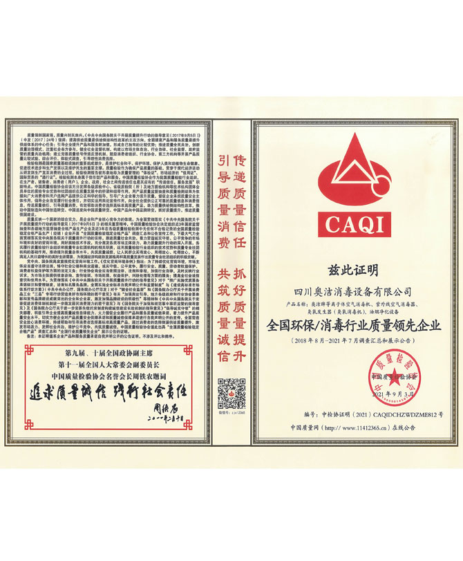 企業(yè)獲得了ISO9001國際質(zhì)量管理體系認證、IS014001環(huán)境管理體系認證、IS045001職業(yè)健康安全管理體系認證、歐盟CE認證、ROHS認證、中國環(huán)境保護CEP認證等多項國際國內(nèi)認證,并榮獲了“中國防疫物資行業(yè)最具影響力品牌企業(yè)”、“全國質(zhì)量信得過產(chǎn)品”、“全國環(huán)保/消毒行業(yè)質(zhì)量領(lǐng)先企業(yè)”、“最具社會責(zé)任感企業(yè)”、“中國制造強國論壇受邀企業(yè)”等諸多榮譽。