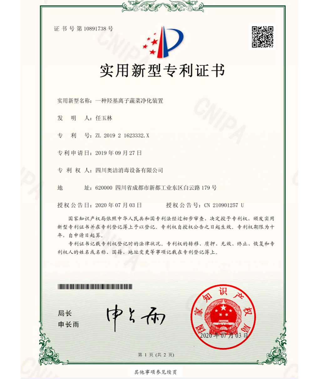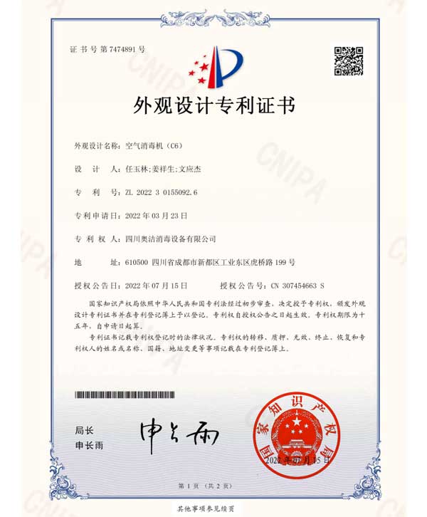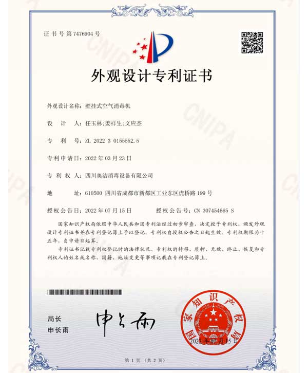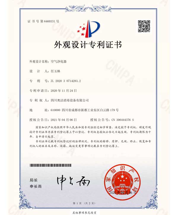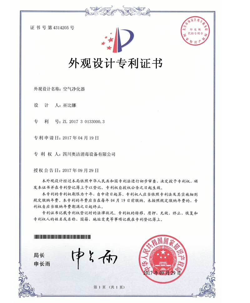 以“科技至上,生活至美”為企業(yè)愿景,堅守“質(zhì)量求真,為人求善”的價值觀。不斷追求技術(shù)的創(chuàng)新和產(chǎn)品質(zhì)量的卓越,讓科技與健康生活完美融合。多年來,奧潔人憑借著不懈的努力和持續(xù)的創(chuàng)新,不僅擁有了獨立自主的知識產(chǎn)權(quán),還成功申請并完成了63項專利技術(shù),其中包括33項技術(shù)專利、9項軟件專利和21項外觀設(shè)計專利。并根據(jù)時代的發(fā)展需求,率先推出了新一代人工智能空氣消毒機。
