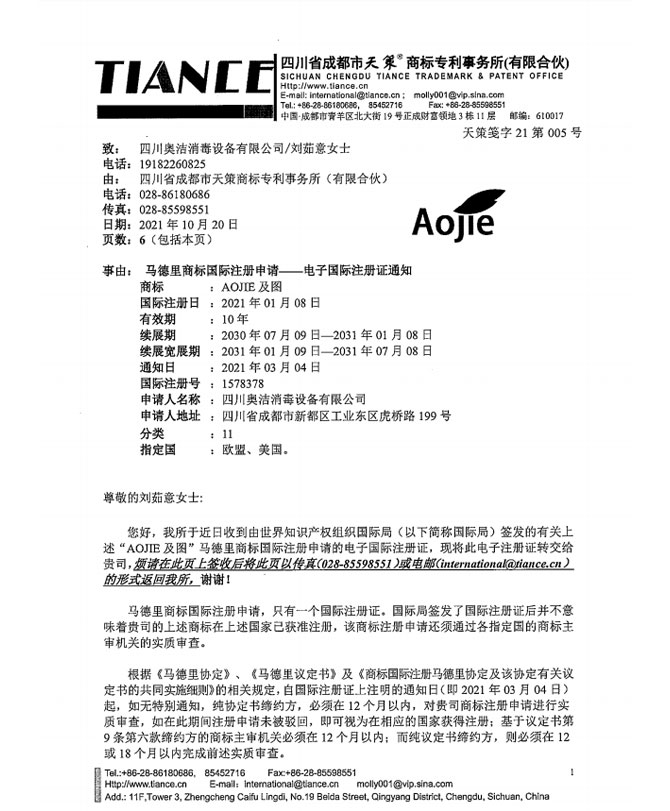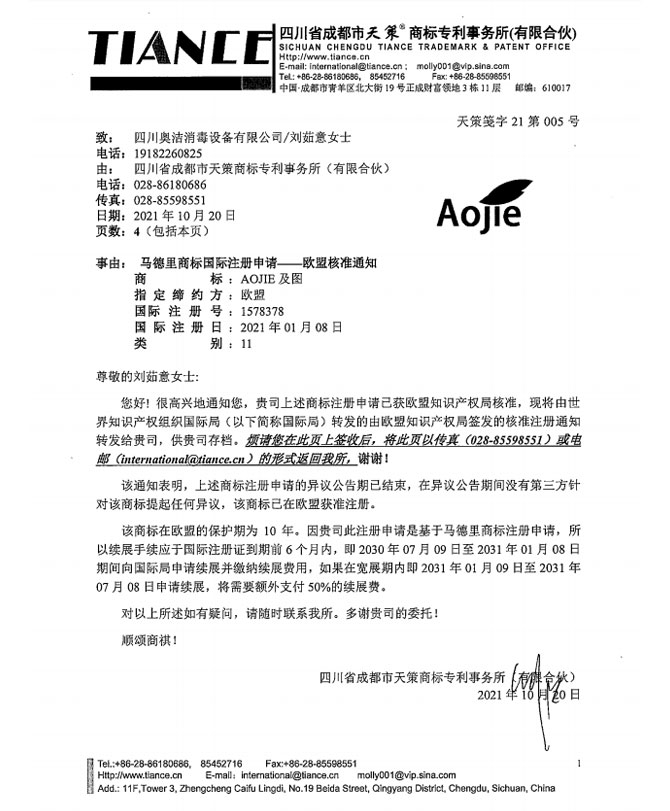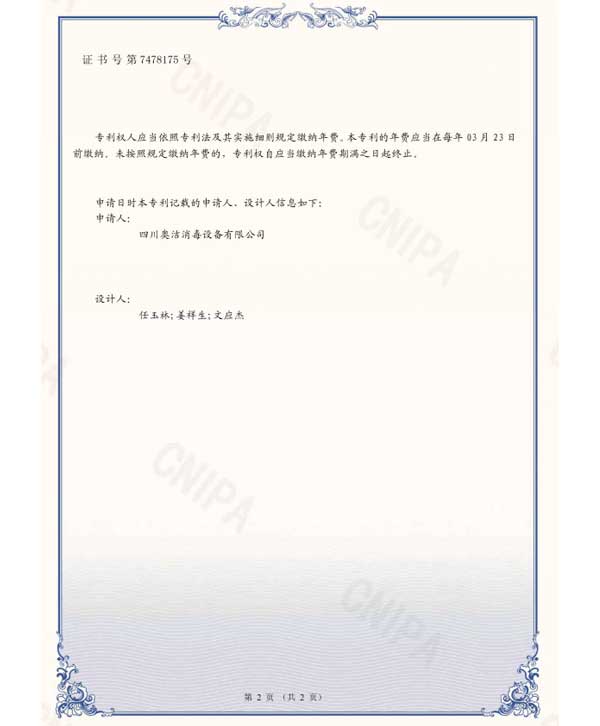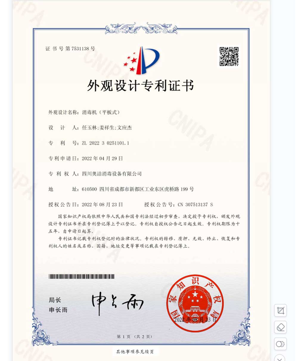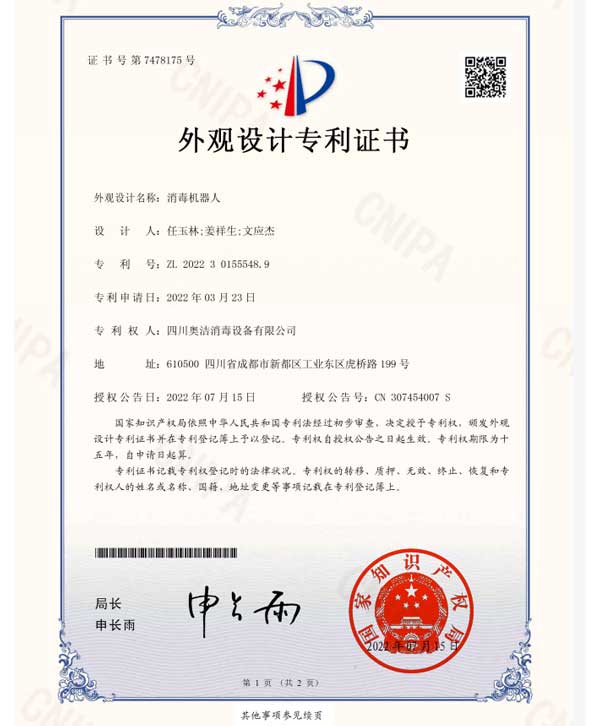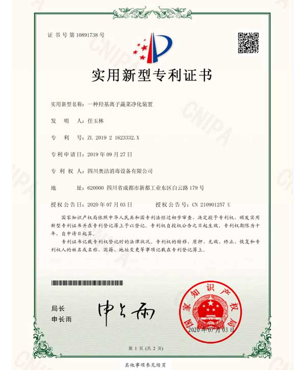 以“科技至上,生活至美”為企業(yè)愿景,堅守“質(zhì)量求真,為人求善”的價值觀。不斷追求技術(shù)的創(chuàng)新和產(chǎn)品質(zhì)量的卓越,讓科技與健康生活完美融合。多年來,奧潔人憑借著不懈的努力和持續(xù)的創(chuàng)新,不僅擁有了獨立自主的知識產(chǎn)權(quán),還成功申請并完成了63項專利技術(shù),其中包括33項技術(shù)專利、9項軟件專利和21項外觀設(shè)計專利。并根據(jù)時代的發(fā)展需求,率先推出了新一代人工智能空氣消毒機。