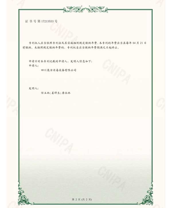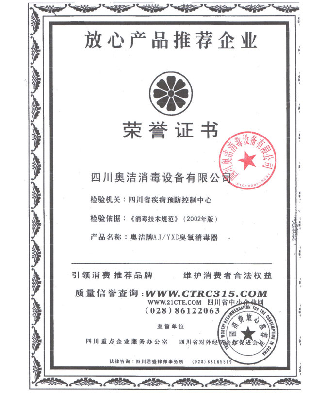 先后獲得 “國家高新技術(shù)企業(yè)”,中國防疫物資?業(yè)“最具影響?品牌企業(yè)”,“中國制造強國論壇受邀企業(yè)”, “中國?業(yè)節(jié)能與清潔?產(chǎn)協(xié)會”優(yōu)秀參展企業(yè)“最具社會責(zé)任感”企業(yè),“守合同重信?” 企業(yè),“中國環(huán)境保護協(xié)會會員”單位,“全國環(huán)保/消毒?業(yè)質(zhì)量領(lǐng)先企業(yè)”,“全國質(zhì)量 信得過產(chǎn)品”,“成都市消毒協(xié)會會員”單位,“?新技術(shù)企業(yè)”等證書及榮譽。